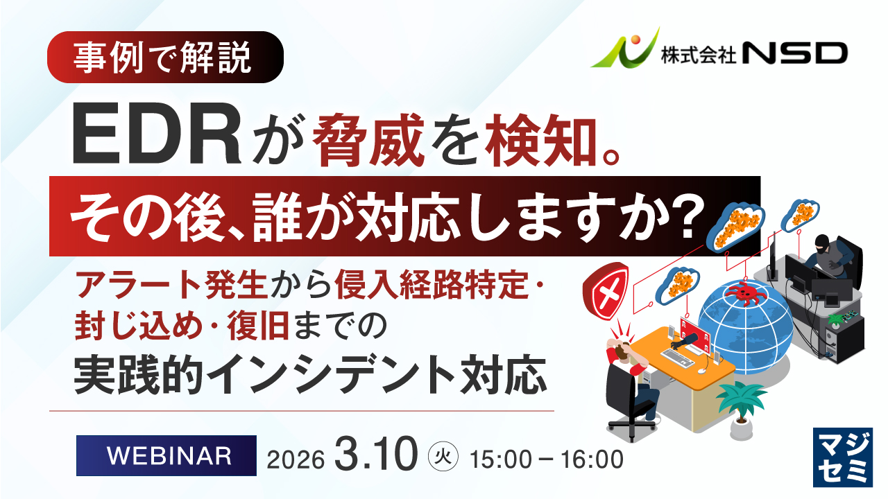 【事例で解説】EDRが脅威を検知。その後、誰が対応しますか? ~アラート発生から侵入経路特定・封じ込め・復旧までの実践的インシデント対応~お申し込み