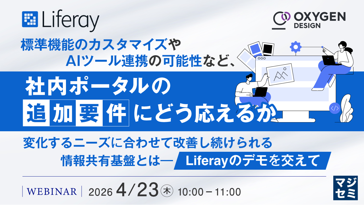 標準機能のカスタマイズやAIツール連携の可能性など、社内ポータルの追加要件にどう応えるか ~変化するニーズに合わせて改善し続けられる情報共有基盤とは―Liferayのデモを交えて~お申し込み