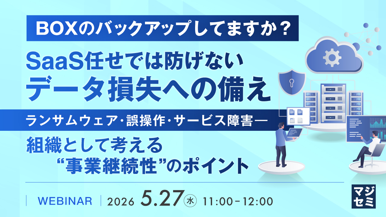 【BOXのバックアップしてますか?】SaaS任せでは防げない データ損失への備え ~ランサムウェア・誤操作・サービス障害――組織として考える“事業継続性”のポイント~お申し込み