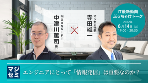 今回は、オープンソース紹介ブログ『MOONGIFT』や、開発者向けマーケティングDevRelサービスなどを手掛ける中津川篤司氏をゲストとしてお招きし、エンジニアによる情報発信の重要性についてぶっちゃけトークを展開します。