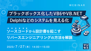 14:05~14:45 ブラックボックス化したVB6、VB.NET、C#などのシステムを見える化 ~ソースコードから設計書を起こすリバースエンジニアリングの方法を解説~
