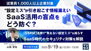 12:05~12:50 “設定ミス”が引き起こす情報漏えい、SaaS活用の盲点をどう防ぐ?~「SSPM」活用で“見えない設定ミス”を減らすSaaS時代のセキュリティ対策を解説~