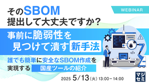 13:05~13:45 そのSBOM、提出して大丈夫ですか?事前に脆弱性を見つけて潰す新手法 〜誰でも簡単に安全なSBOM作成を実現する国産ツールの紹介〜
