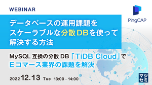 本セミナーでは、分散技術によって今までのRDBでは難しかった柔軟なスケーラビリティを実現し、MySQLプロトコルとの互換性があるためMySQLアプリケーションからの移行も容易な、PingCAP社が提供するデータベース「TiDB Cloud」を紹介します。 MySQLの性能課題に悩んでいる、またはMySQLの移行を検討している、Eコマース企業に属するCTO、DB管理者の方はぜひご参加ください。