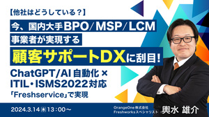 人口減少社会の日本では、企業は人手不足の慢性化という課題に直面し、この問題に対応するため、「顧客サポートのDX」は選択肢ではなく、必須の戦略テーマとなっております。 そんな中BPO/LCM/MSP事業者様に求められる役割も単なる人手不足の一時的な解決手段から、業務変革の戦略的パートナーへその役割がシフトしています。 顧客企業におけるそうしたニーズの変化に迅速かつ効果的に対応するためには「重厚長大で複雑なレガシーシステム」から脱却し、誰もが簡単に使いこなせるITツールと生成AIの組み合わせによる業務効率化、自動化への移行こそが求められています。 本ウェビナーでは、こうしたBPO/LCM/MSP市場のトレンド変化となぜ今、業界でChatGPT・AI自動化対応のFreshserviceが求められているのかについて話していきます。
