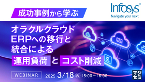 インフォシスとオラクルが共同で開催するセミナー「成功事例から学ぶ:オラクルクラウドERPへの移行と統合による運用負荷とコスト削減」を開催いたします。 本セミナーでは、インフォシスが手掛けた数々の成功事例を通じて、SAPやOracle EBSなどオンプレミスの既存ERPからオラクルクラウドERPであるOracle Fusion Cloud Applicationへのシームレスな移行と統合のプロセスをご紹介します。また、オラクルからは最新の製品動向や技術革新についての情報をお届けします。