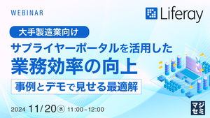 本ウェビナーでは、大手製造業が抱える調達プロセスの課題を解決するLiferayのサプライヤーポータルを解説いたします。 サプライヤーポータルの有効性だけではなく、コミュニケーションや連携の一元化や、プロセスのデジタル化と自動化などの、 5つのベストプラクティスを詳しく解説いたします。 ウェビナーの中では、グローバルに展開する企業での実際の導入事例もご紹介し、各企業がどのような課題を持ち、Liferayによりどのような成果を出しているのかを解説します。 大手製造業において調達プロセスの課題をお持ちの方や、サービスをご提案する立場の方に特におすすめの内容です。