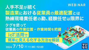 11:05~11:45 人手不足が続く製造業における従業員の最適配置とは 熟練現場責任者の勘、経験任せは限界に~タグを使って従業員の作業位置・作業時間を把握、IoT活用で簡単に見える化する方法を解説~