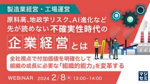 13:05~13:45 (製造業経営・工場運営)原料高、地政学リスク、AI進化など、先が読めない不確実性時代の企業経営とは