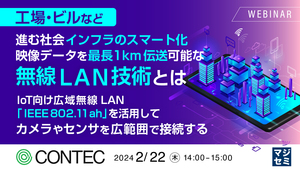 本セミナーでは、近年需要が増えているカメラの画像や映像データを活用したIoTシステムに適した、新しい種類の無線通信規格「IEEE802.11ah」に焦点を当てて、どんな特徴があるのか、他の無線企画とどう異なるのか、などを様々な事例をもとに詳しく解説します。
