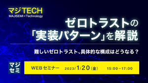 そこで本セミナーでは、ゼロトラストの実現のためには、どのようなカテゴリの製品をどのように組み合わせる必要があるのか、ゼロトラストの「実装パターン」について、わかりやすく解説します。 (注)ご紹介するのはあくまでも「考え方」であり、検証されている具体的な製品の組み合わせをご紹介するものではありません。ご了承ください。