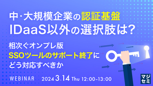 2024年3月14日(木)12:00~13:00 中・大規模企業の認証基盤、IDaaS以外の選択肢は? ~相次ぐオンプレ版SSOツールのサポート終了にどう対応すべきか~